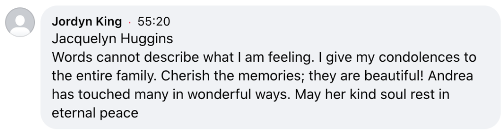 Andrea’s Funeral Service @ United Moravian Church (video via Facebook)